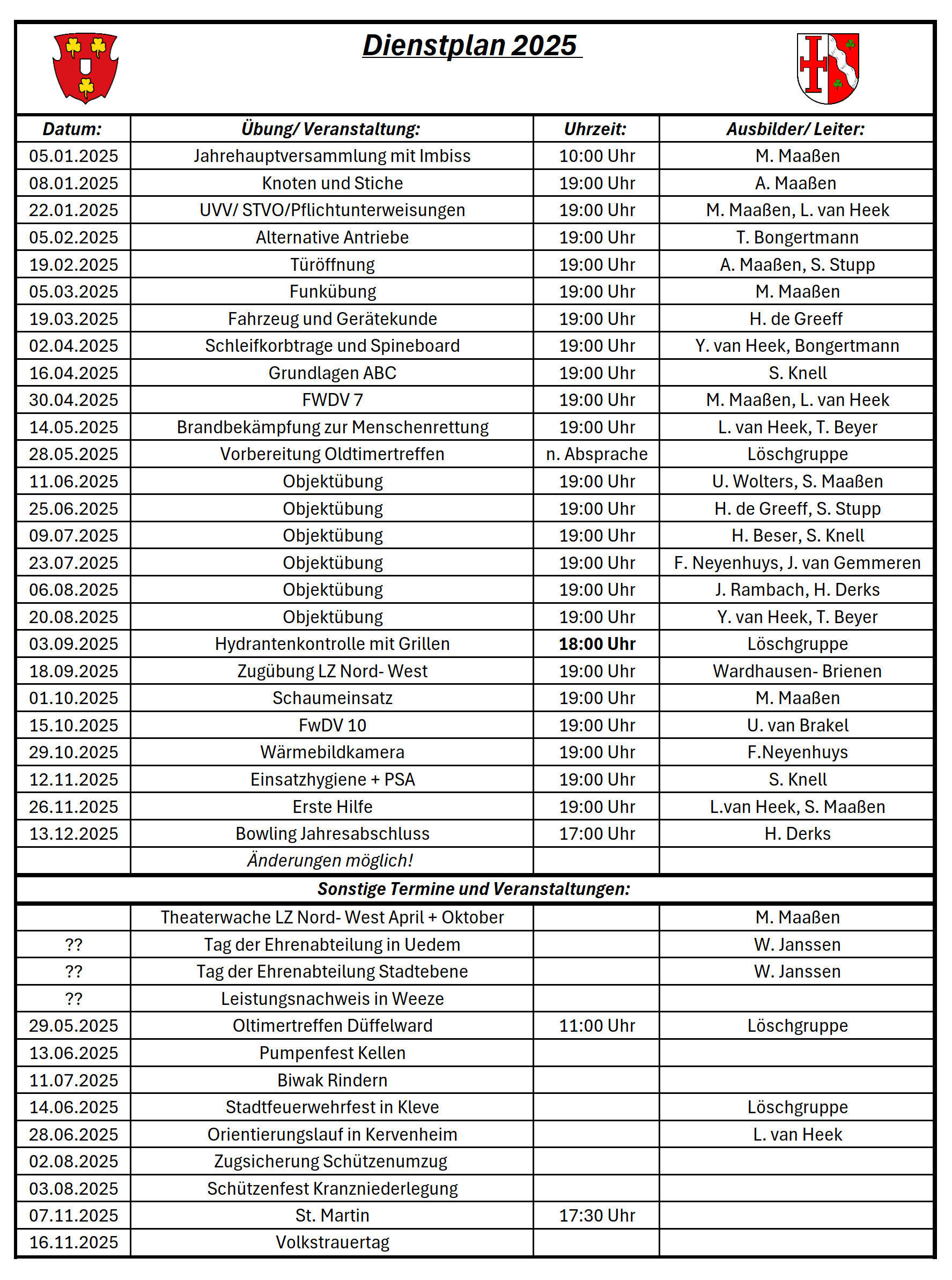Download Dienstplan 2025 Löschgruppe Düffelward